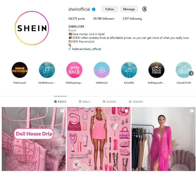 Official Instagram account of clothing brand SHEIN. (Source: Instagram)